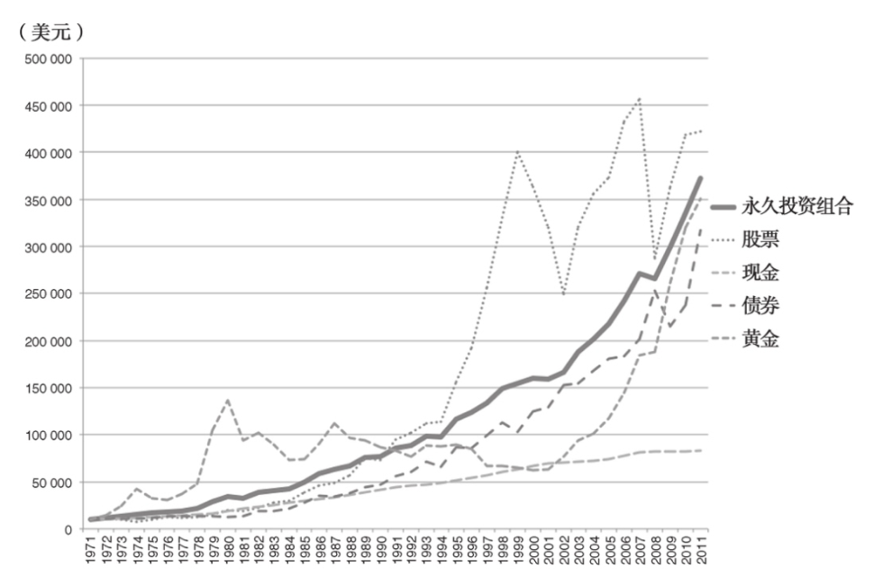 在过去的40年里,永久投资组合策略每年提供的投资收益在9%~10%。最严重的损失大约是1981年出现的5%的下跌。